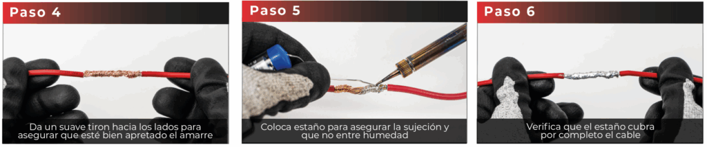 Al realizar un contacto firme y sólido entre los conductores, se reduce significativamente el riesgo de chispas, cortocircuitos o sobrecalentamiento, los cuales podrían provocar fallas eléctricas o incluso accidentes graves. Este amarre asegura que la corriente fluya de manera estable y constante.