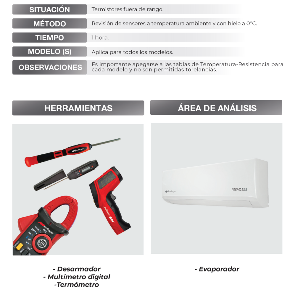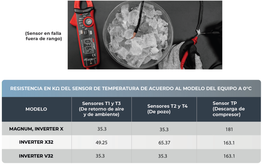 Todos los sensores de temperatura del equipo deben revisarse siempre que exista un código de funcionamiento anormal activado en el equipo