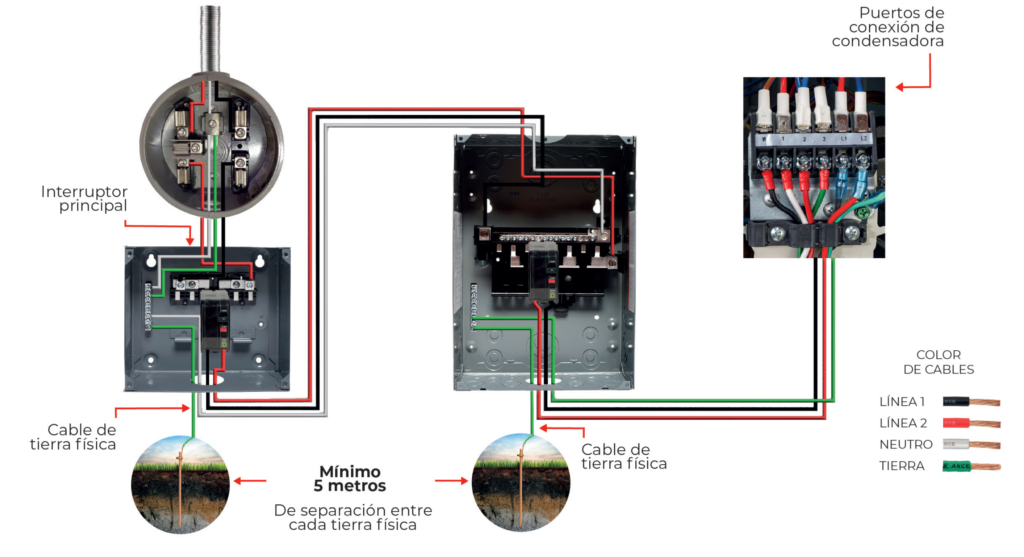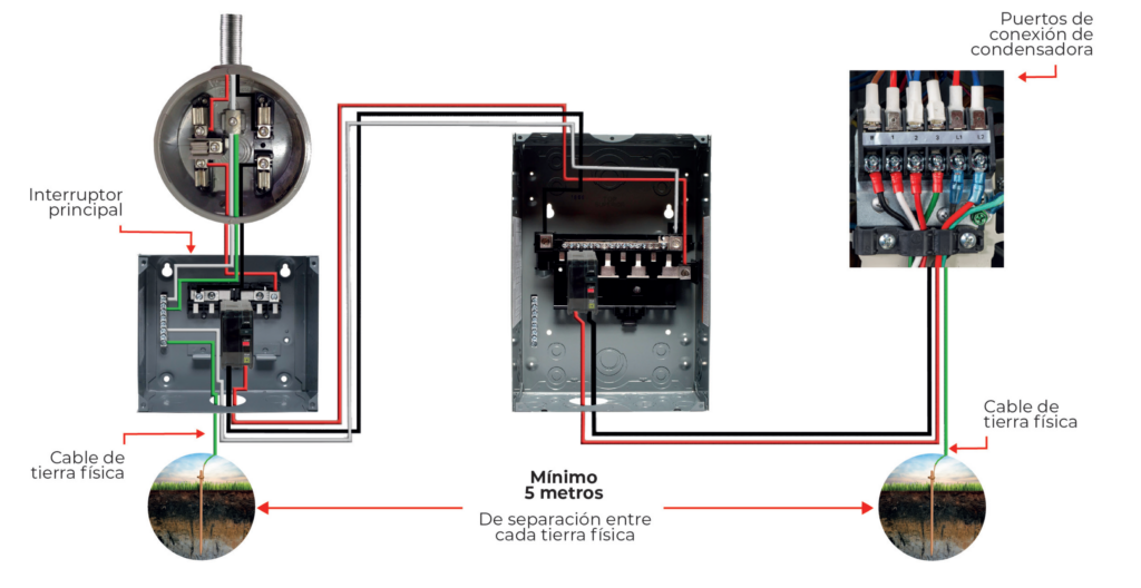 Para la instalación del cable de tierra física de los equipos de aire acondicionado, se debe utilizar el mismo calibre que se utilizó para la alimentación eléctrica